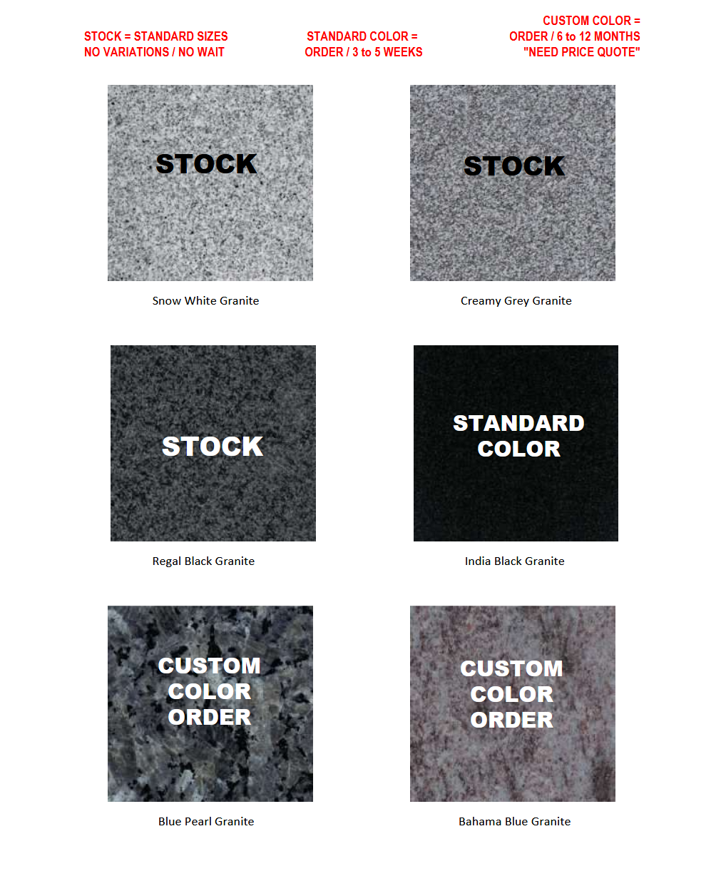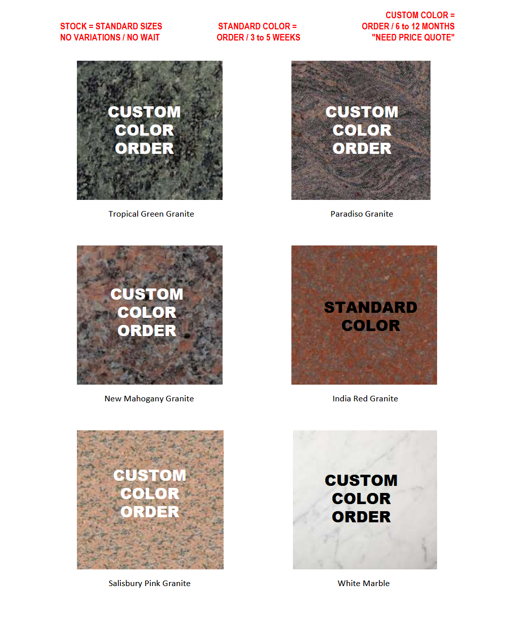 All pricing includes a monument base that is 4" wider than Die, Depth 12" and Height 6"